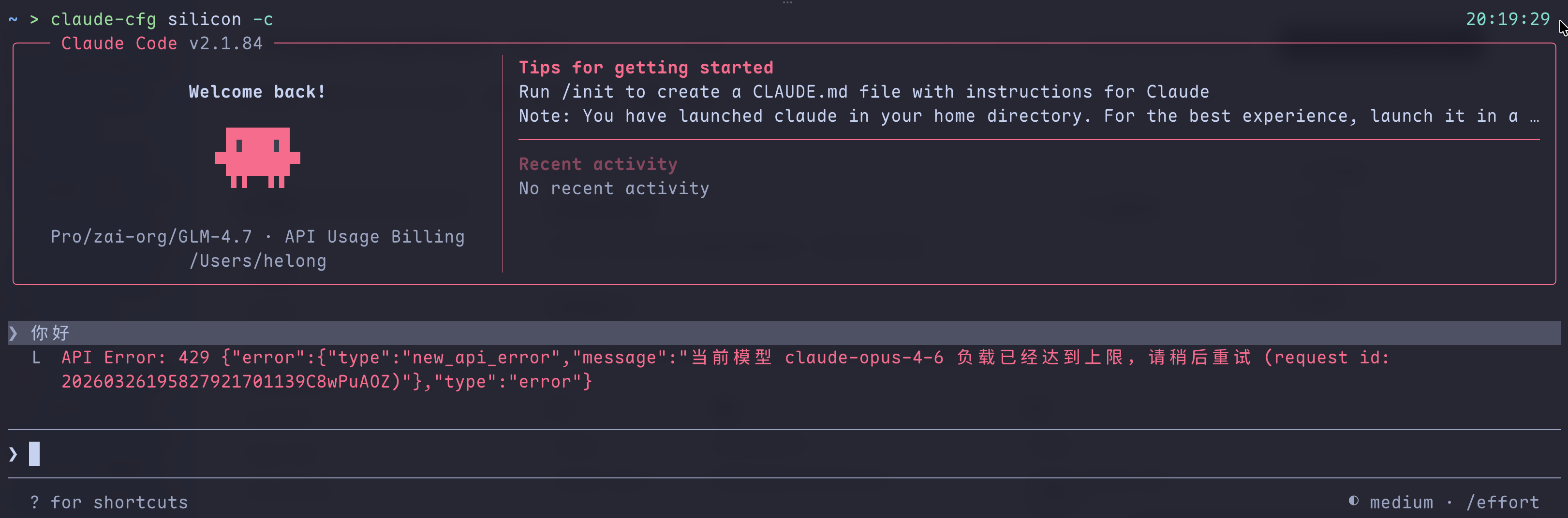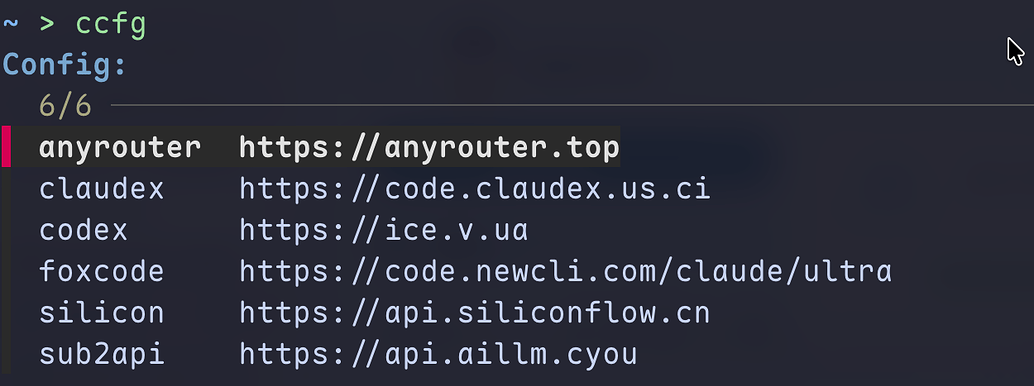 后面也可以加对应的参数等等,如果不需要加参数,仅简单的新对话启动也可以使用 ccfg列出所有的配置进行选择,这个功能依赖 fzf :